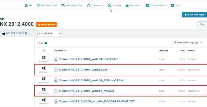For NX there is a full installer (xxx_wntx64.zip) or a patch installer (xxx_wntx64_MPS.zip), if you have already installed an older NX version of the same NX Series: